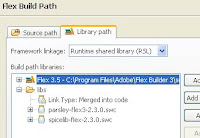 So, now that you have selected the two files that you need, simply copy them to the "libs" folder of your FlexBuilder's project. That's it. Parsley is ready to be used in that project. If you don't have a "libs" folder already in your project, you can go to the Project Properties and select Flex Build Path on the left, then select the Library Path tab on the right side. Add a swc folder and make sure it is set to Merge into Code as the link type.